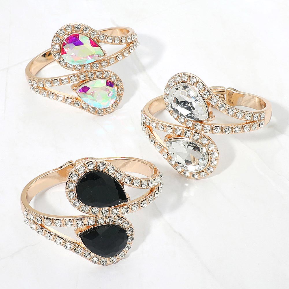 • Eye-catching hinged statement ring featuring a double teardrop crystal design with pavĂ©-style accents. The open layered look creates bold dimension while offering a comfortable fit. Ideal for fashion-forward styling, evening outfits, events, gifting, or boutique jewelry collections. Perfect for customers seeking dramatic sparkle with an elegant silhouette.