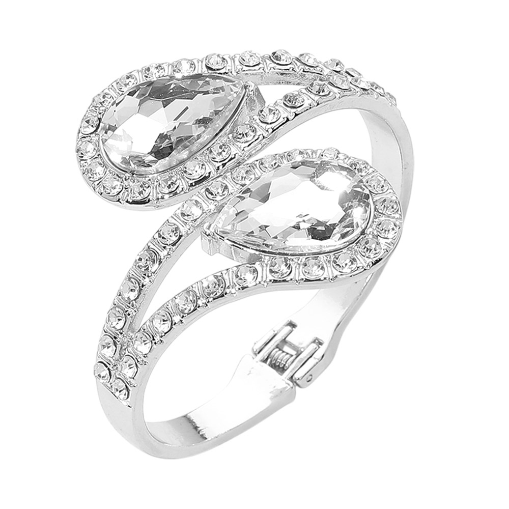 Bold Double Teardrop Tip Wrap Hinged Bangle Evening Bracelet