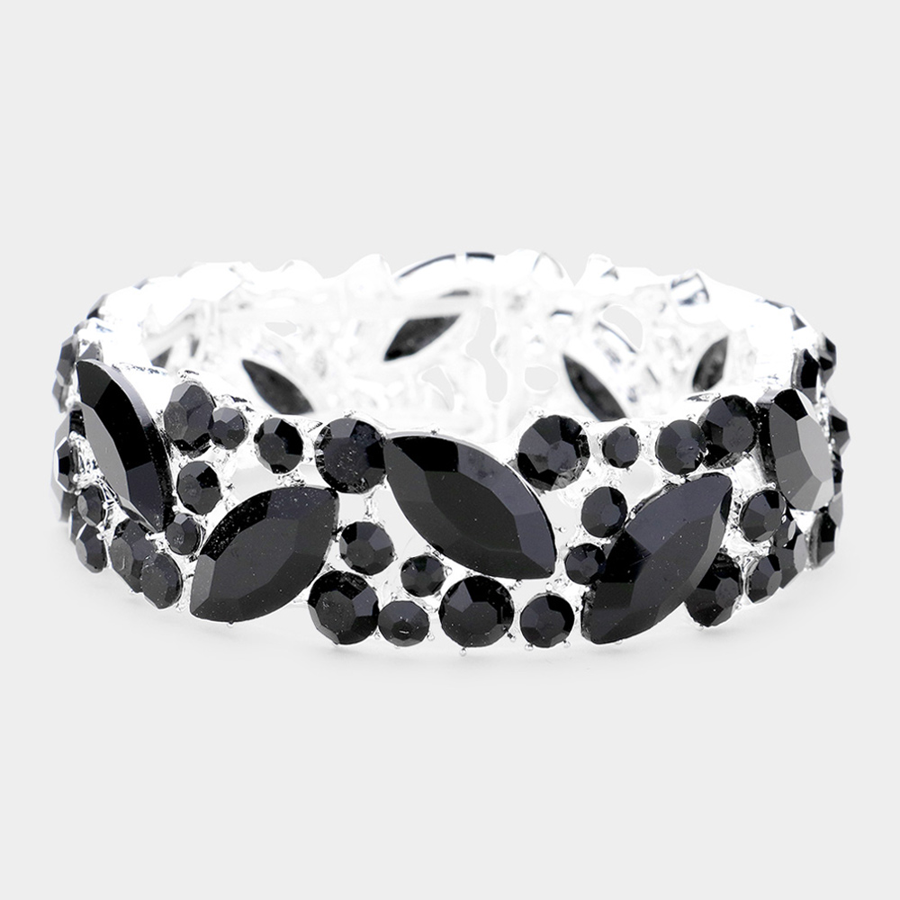 Faceted Bead Textured Metal Accented Stretch Bracelet