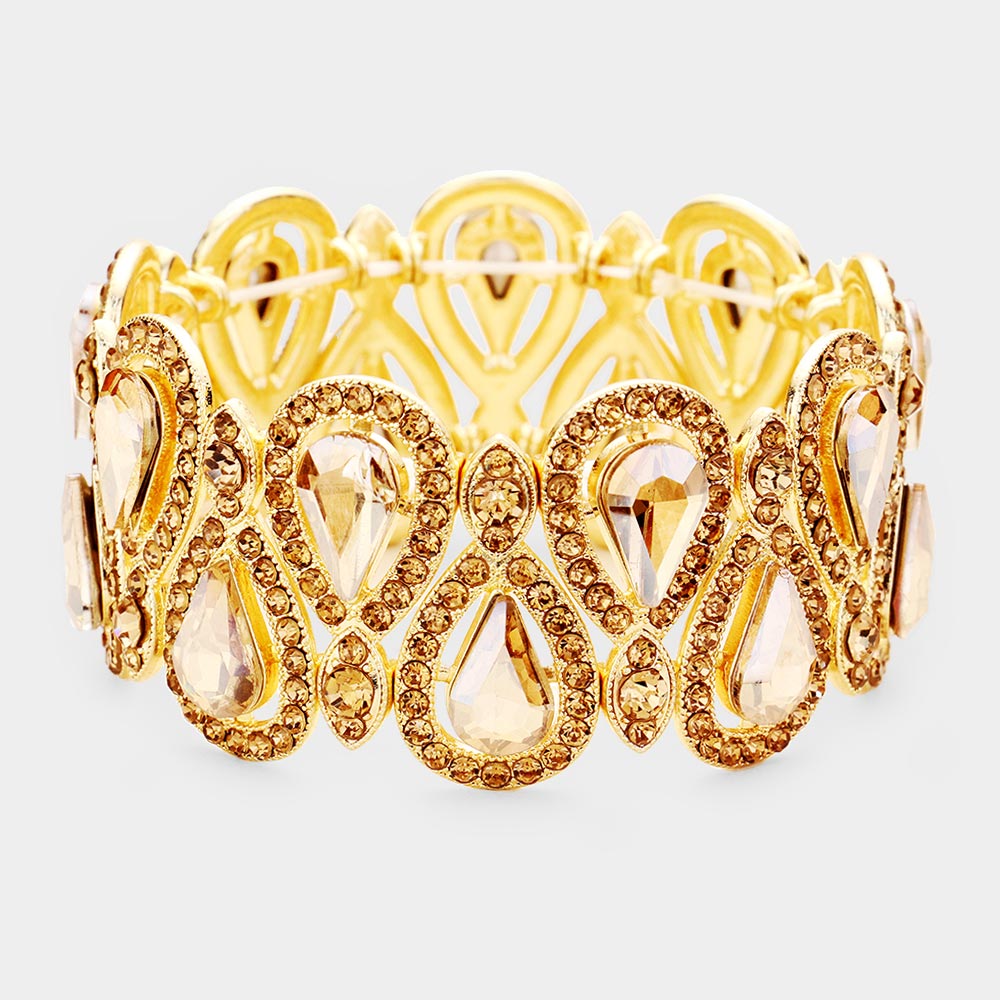 Crystal Glass Teardrop Evening Stretch Bracelet