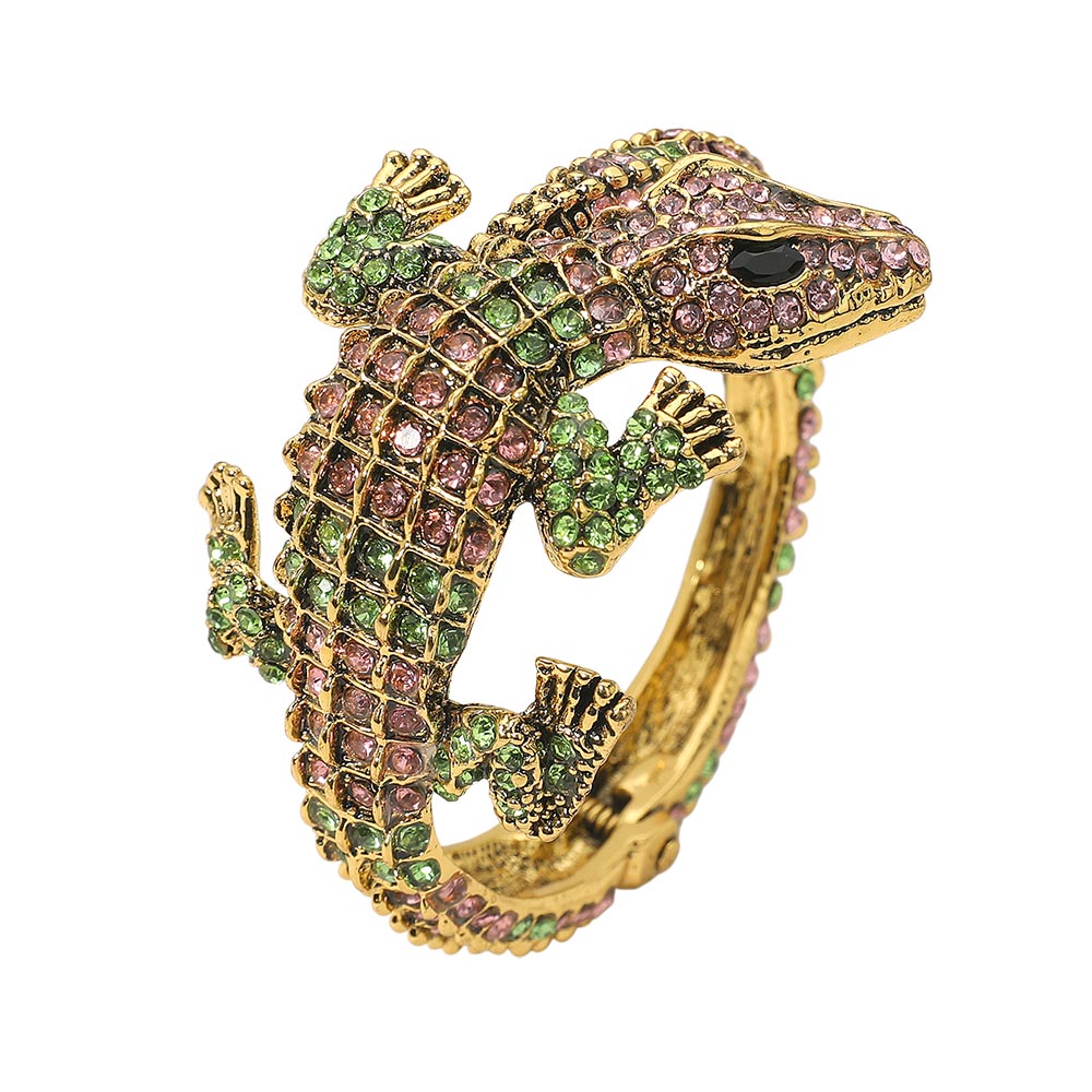 Crystal Rhinestone Crocodile/Alligator Embellished Evening Hinged Cuff Bracelet