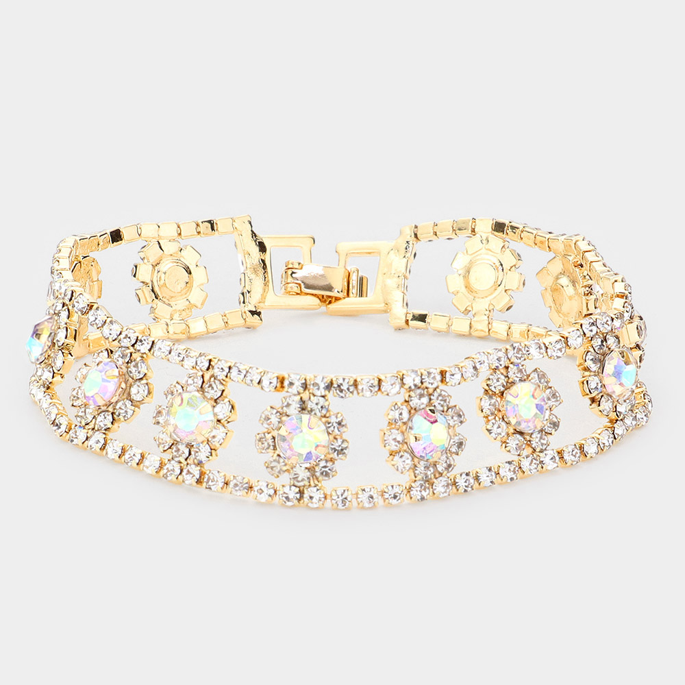 2 Row CZ Stone Tennis Chain Evening Bracelet