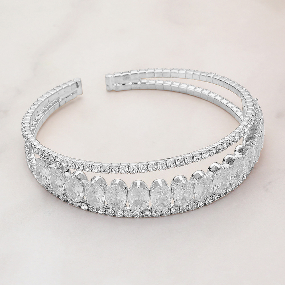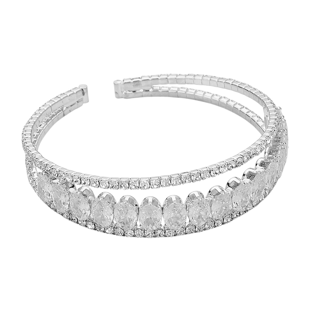 CZ Oval Stone Accented Evening Cuff Bracelet CZ Oval Stone Accented Evening Cuff Bracelet