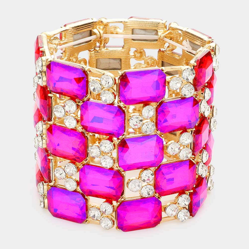 Marquise Stone Cluster Embellished Flower Stretch Evening Bracelet