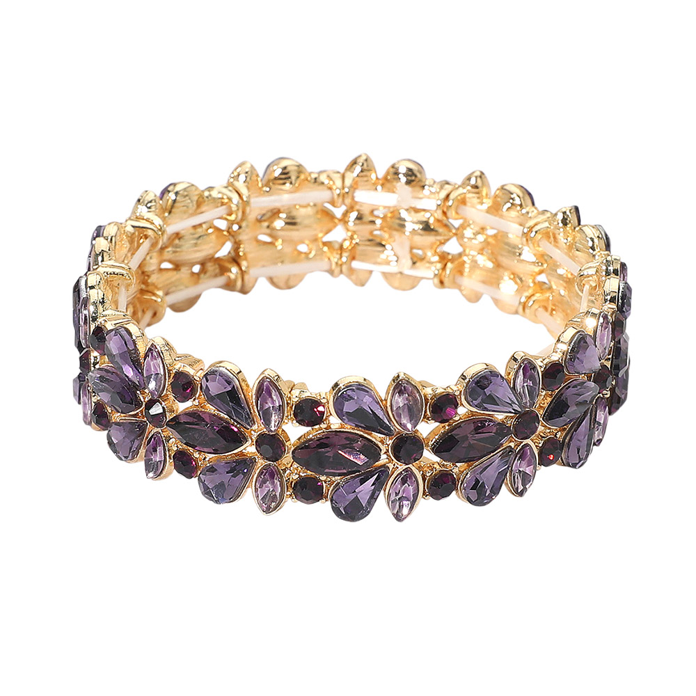 • An elegant stretch bracelet featuring layered floral detailing with a radiant, eye-catching finish. Designed for comfortable slip-on wear, ideal for parties, weddings, formal events, and special occasions, delivering refined style and glamour to elevate any outfit.