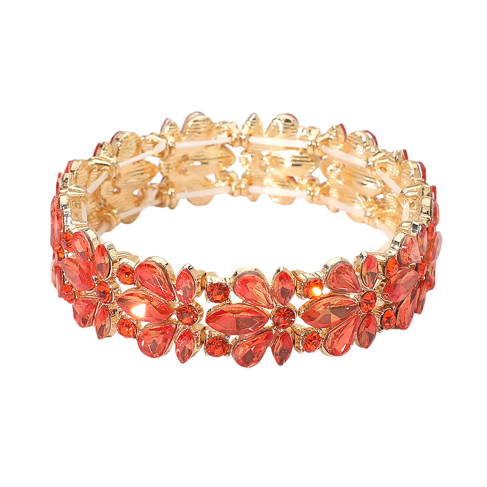 • An elegant stretch bracelet featuring layered floral detailing with a radiant, eye-catching finish. Designed for comfortable slip-on wear, ideal for parties, weddings, formal events, and special occasions, delivering refined style and glamour to elevate any outfit.