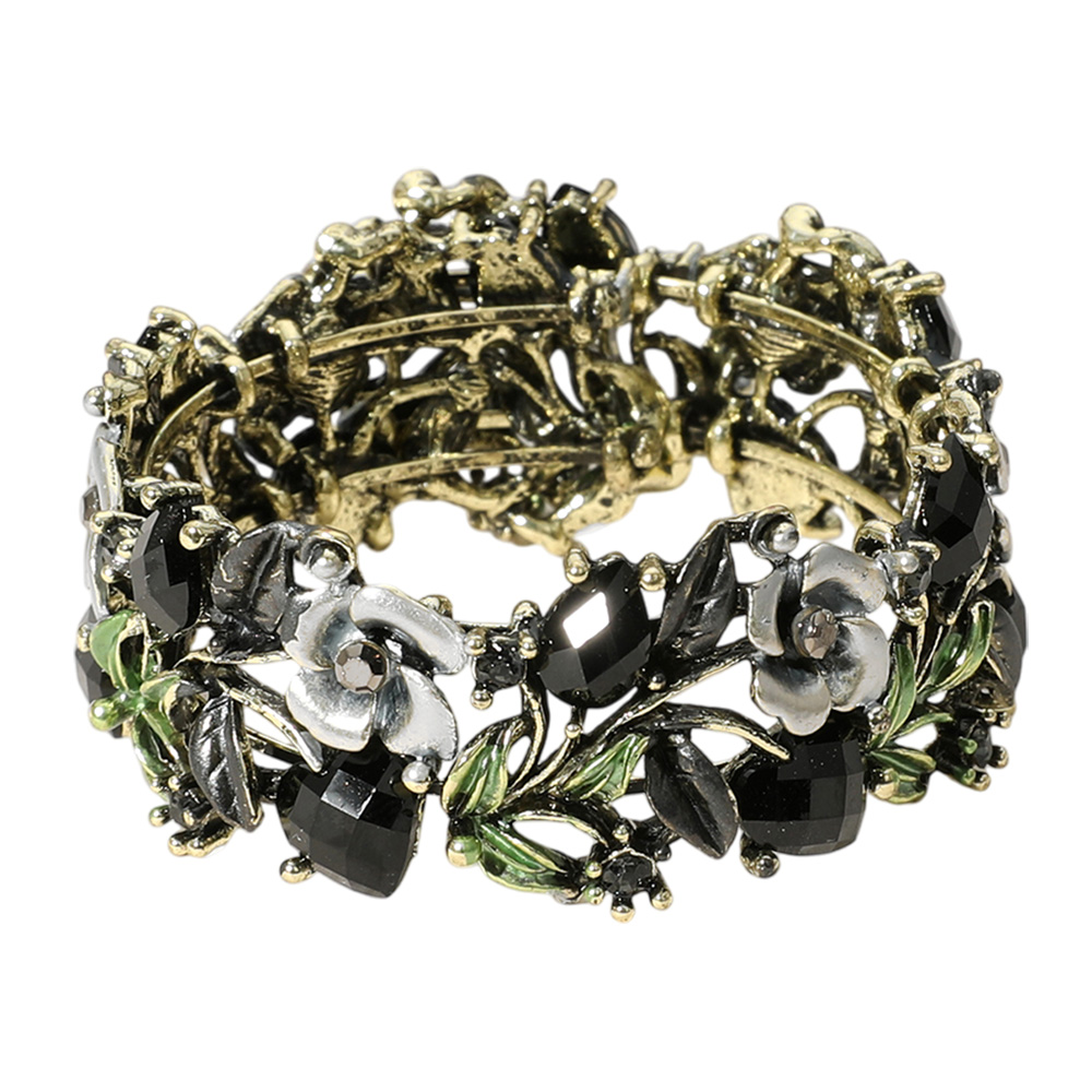 Glass Crystal Metal Flower Leaf Evening Bracelet