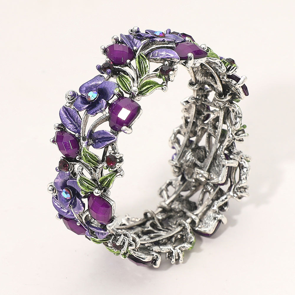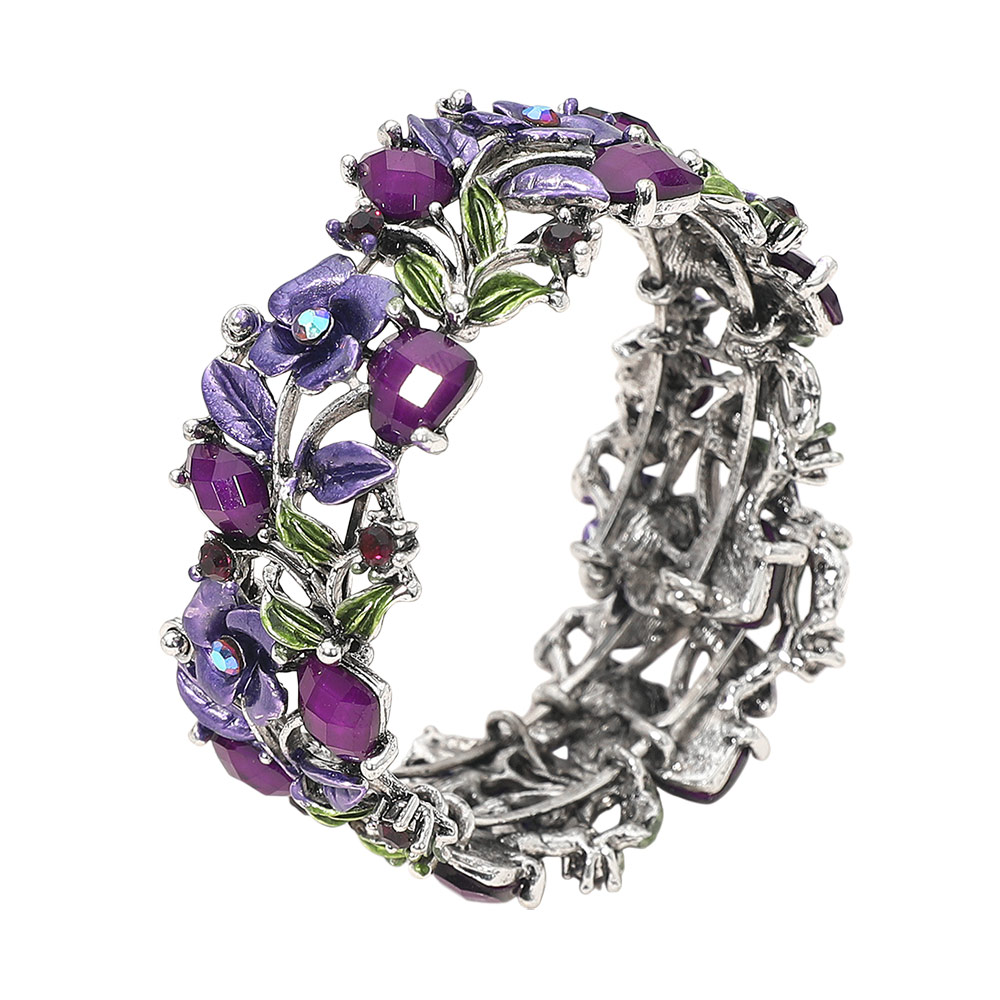 Details • Size : 1" H • Adjustable • Brighten your look with a floral statement bracelet featuring vibrant petals, sparkling accents, and intricate detailing. Adjustable for a comfortable fit, this bold accessory brings a touch of whimsy and elegance, making it perfect for special occasions or adding flair to everyday style.