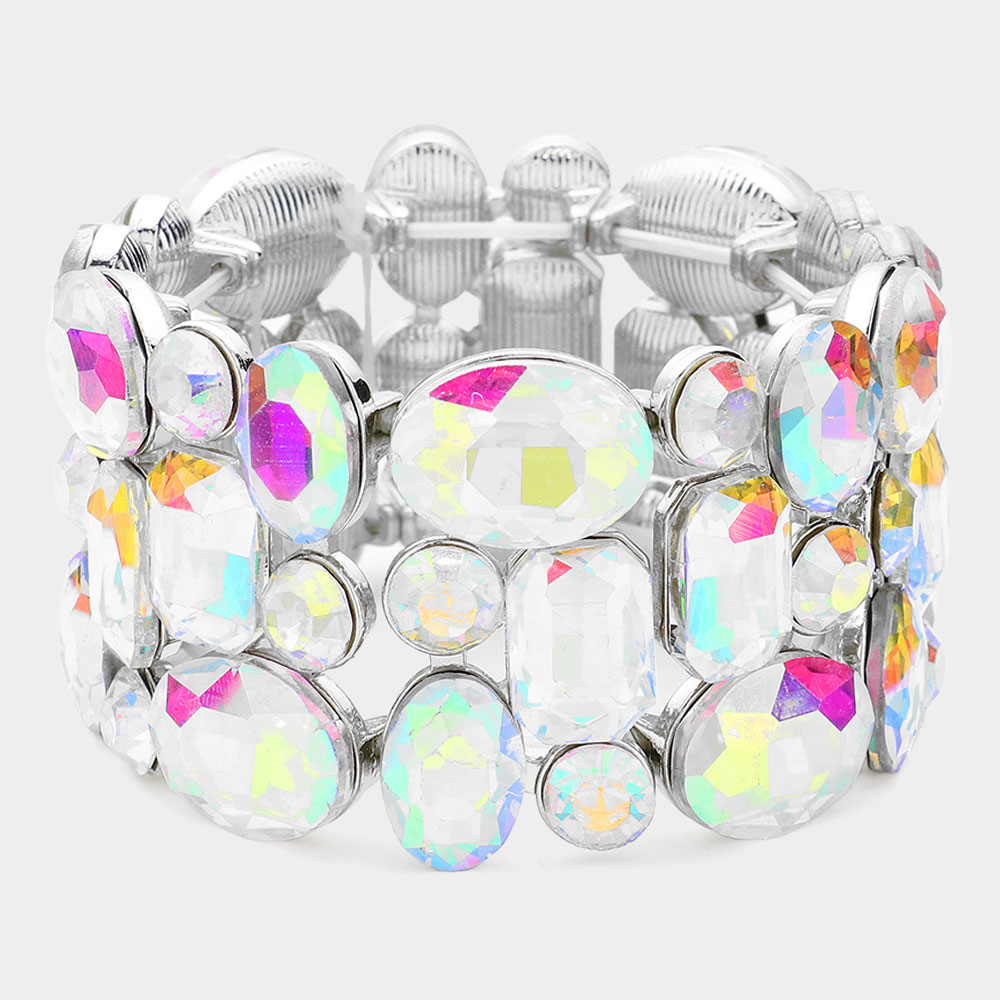 Round Marquise Stone Cluster Stretch Evening Bracelet