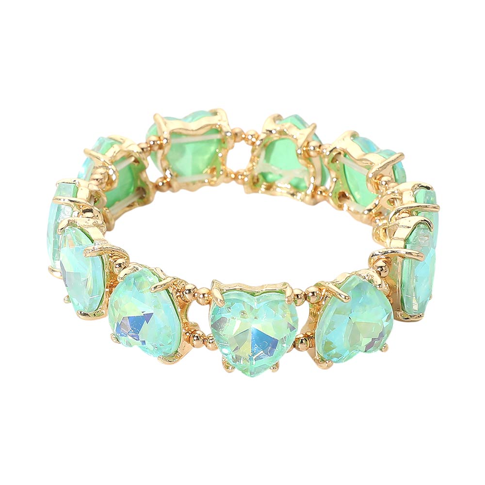 Heart Stone Cluster Beaded Stretch Evening Bracelet
