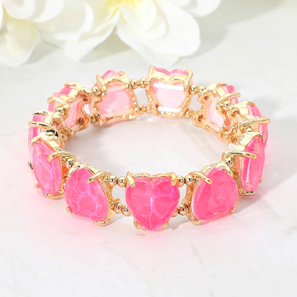 • This heart shape stretch bracelet features a continuous row of faceted heart accents that create eye-catching dimension and shine. Designed for comfortable slip-on wear, it delivers a bold yet romantic look that works for everyday styling, gifting moments, and statement jewelry collections across seasonal and special-occasion assortments.