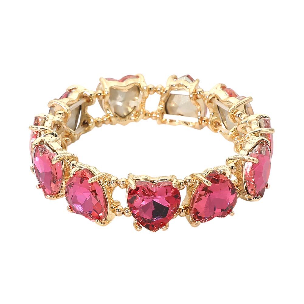 • This heart shape stretch bracelet features a continuous row of faceted heart accents that create eye-catching dimension and shine. Designed for comfortable slip-on wear, it delivers a bold yet romantic look that works for everyday styling, gifting moments, and statement jewelry collections across seasonal and special-occasion assortments.