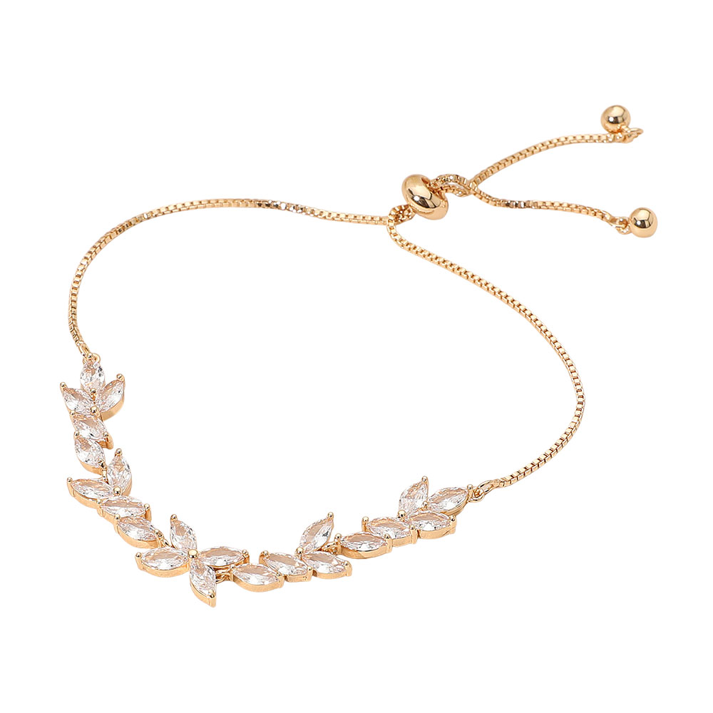 • This adjustable bracelet features a graceful leaf motif adorned with shimmering crystals, creating a refined and radiant look. Designed for comfort and elegance, it’s an ideal choice for adding subtle sophistication to formal attire or elevating your everyday ensemble effortlessly.