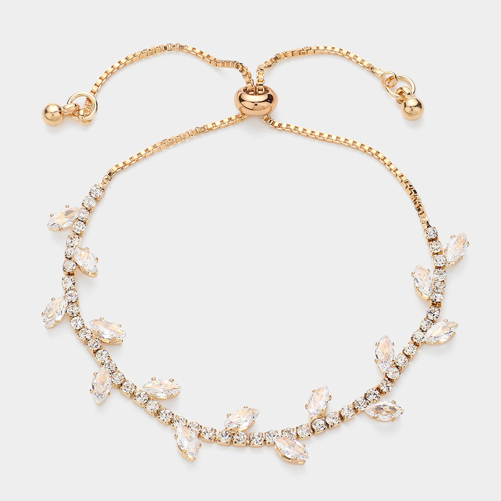 Marquise CZ Stone Cluster Pointed Leaf Vine Adjustable Pull Tie Bracelet