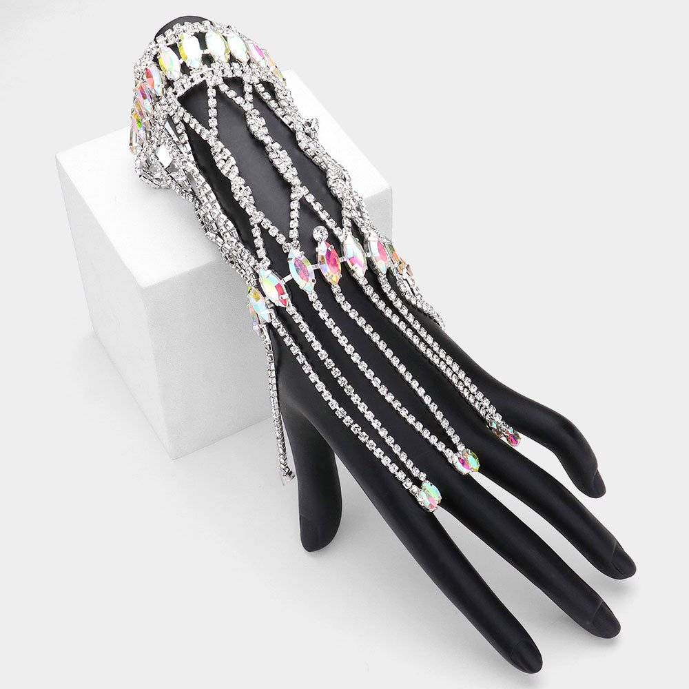 Marquise Stone Cluster Embellished Rhinestone Paved Hand Chain Evening Bracelet