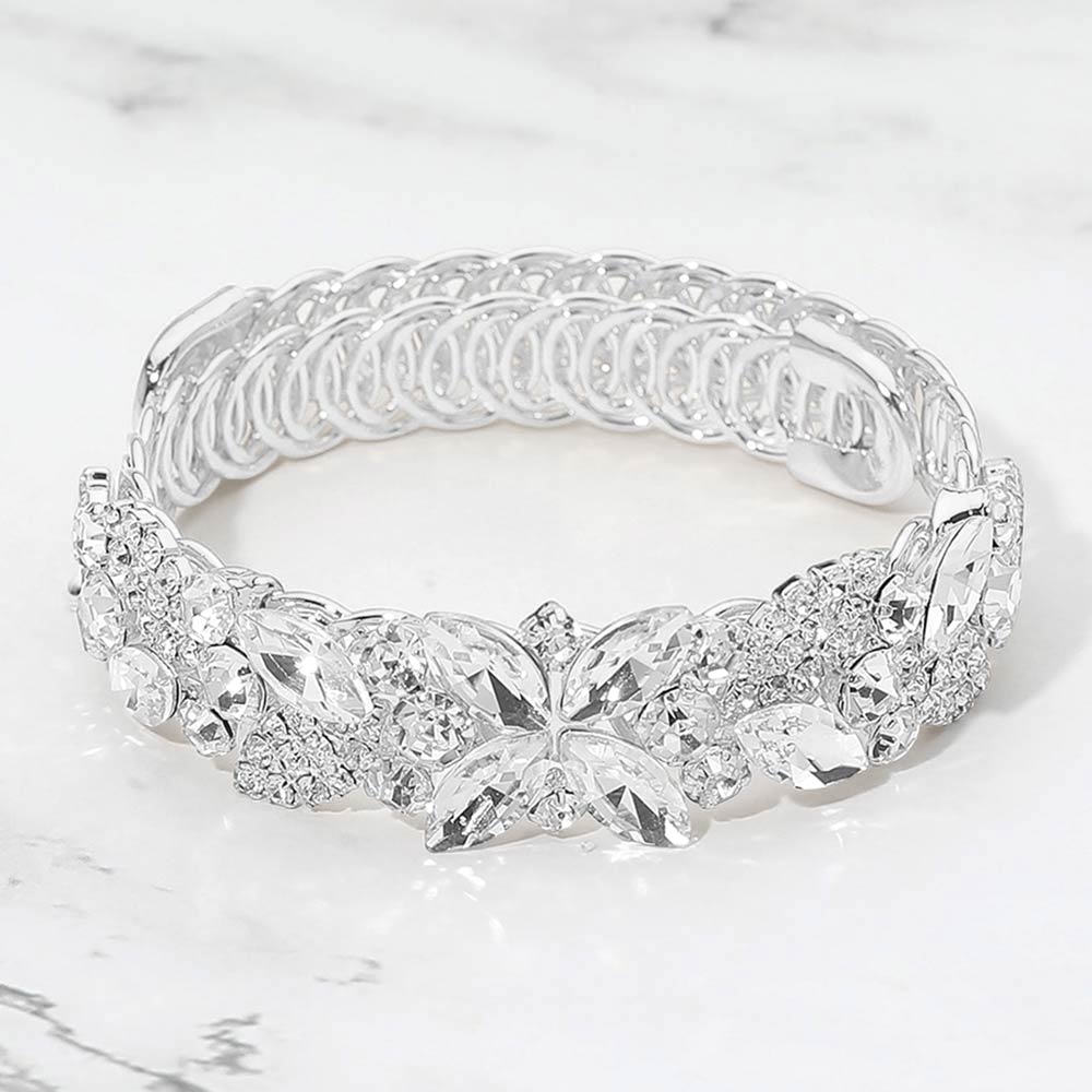 Marquise Stone Cluster Floral Embellished Adjustable Evening Bracelet Marquise Stone Cluster Floral Embellished Adjustable Evening Bracelet