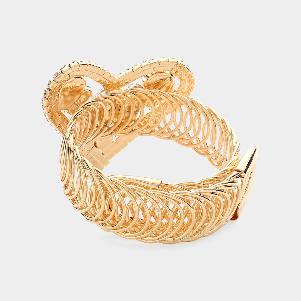 Marquise Teardrop Stone Cluster Embellished Rhinestone Paved Heart Pointed Adjustable Evening Bracelet / Arm Cuff
