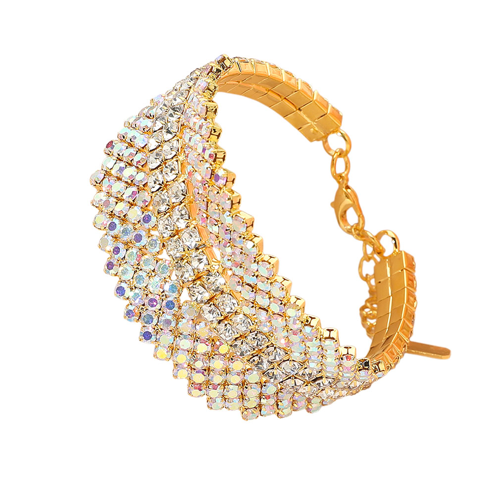 • Make a dazzling impression with this multi-row crystal statement bracelet. Designed with layered rows of radiant stones that catch the light from every angle, it adds a glamorous sparkle to any ensemble. Perfect for formal events, evening wear, or adding shine to a chic everyday look.