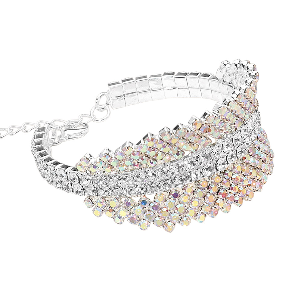 Multi-Row Rhinestone Embellished Evening Bracelet