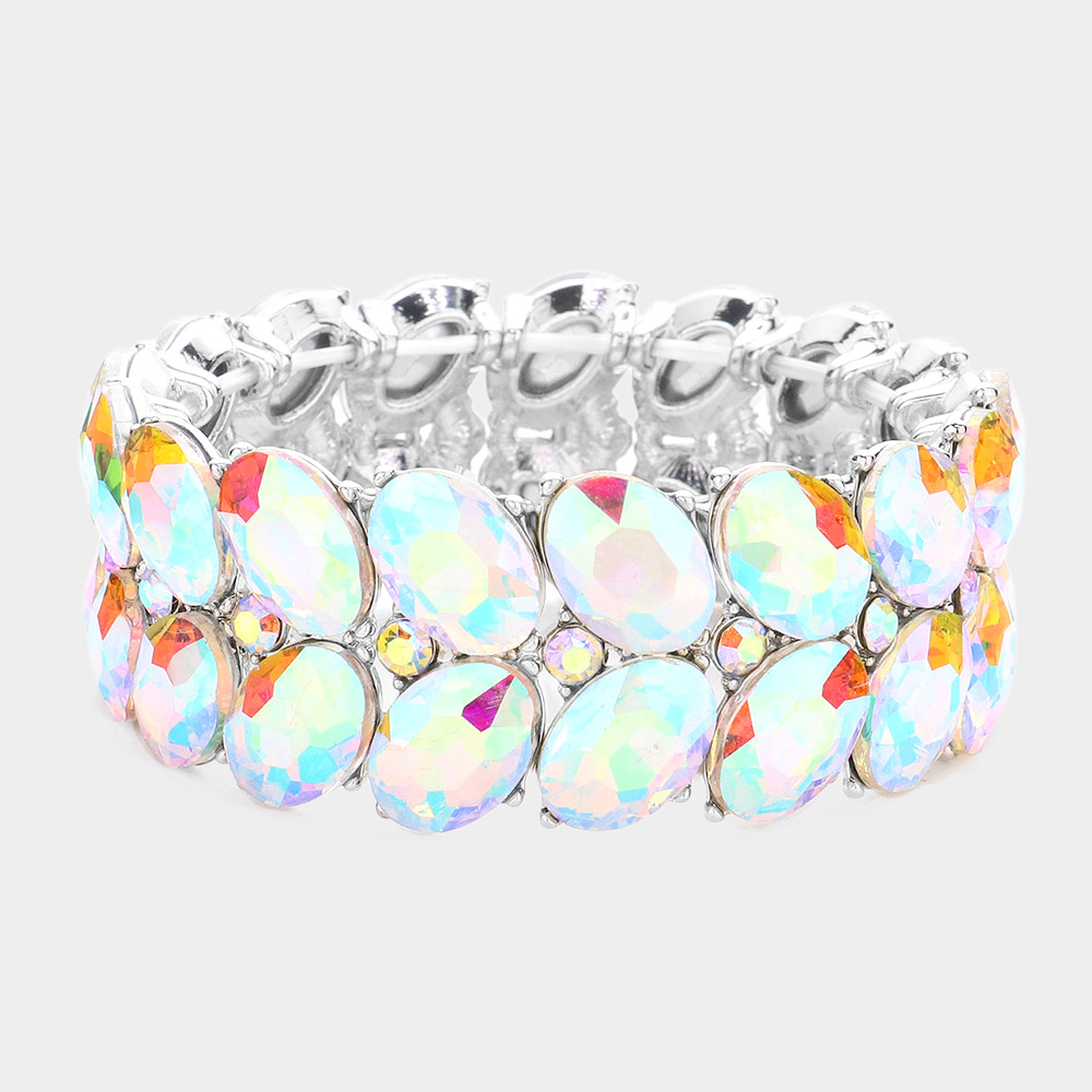 Sterling Silver Post Rhinestone Studded Chunky Oval Hoop Earrings