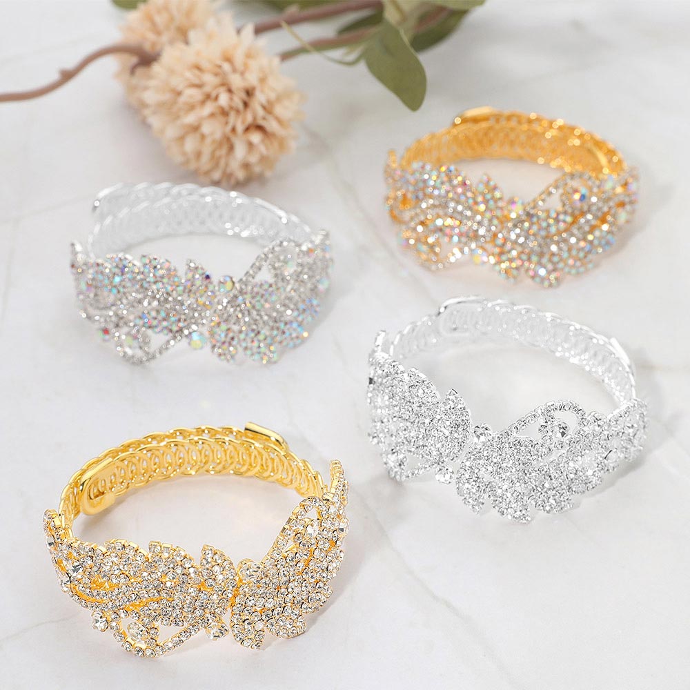 • Sparkling leaf-vine rhinestone bracelet featuring intricate crystal clusters, elegant scrolling accents, and a comfortable adjustable fit. A stunning accessory for formal events, weddings, and special occasions, adding refined shine to any look.