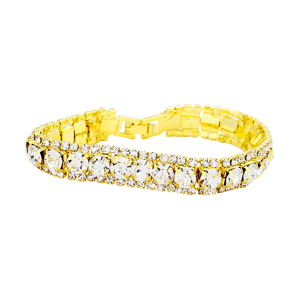 • This elegant double row bracelet features iridescent stones framed by shimmering accents for a radiant, eye-catching look. With a secure clasp and refined design, it’s perfect for adding a touch of glamour to evening wear or elevating everyday outfits.