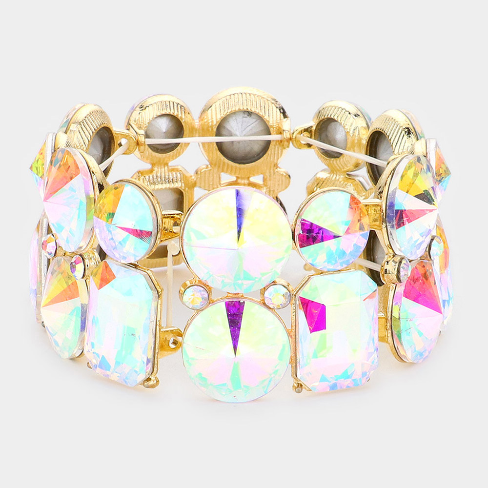 Round Emerald Cut Stone Stretch Evening Bracelet