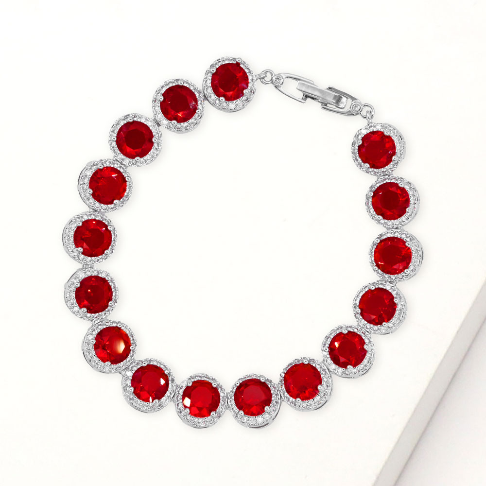 • Enhance your look with this stunning round halo bracelet featuring brilliant stones in a radiant setting. A perfect blend of elegance and glamour, this timeless piece adds a touch of sophistication to any outfit, making it ideal for special occasions or everyday luxury.