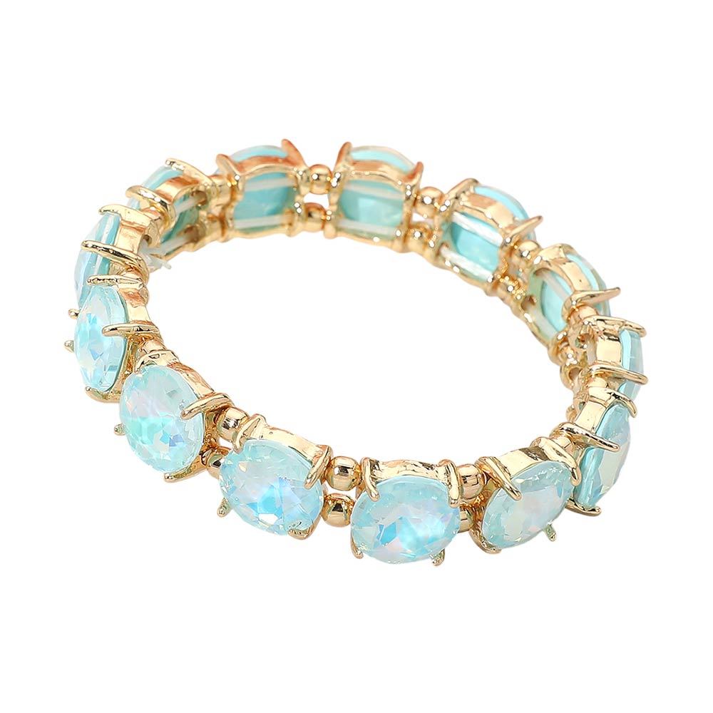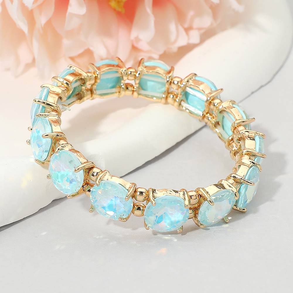 Round Stone Cluster Beaded Stretch Evening Bracelet