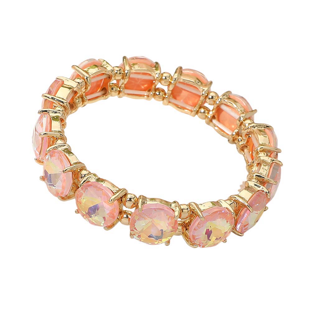 Round Stone Cluster Beaded Stretch Evening Bracelet