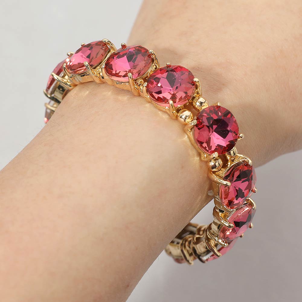 Round Stone Cluster Beaded Stretch Evening Bracelet