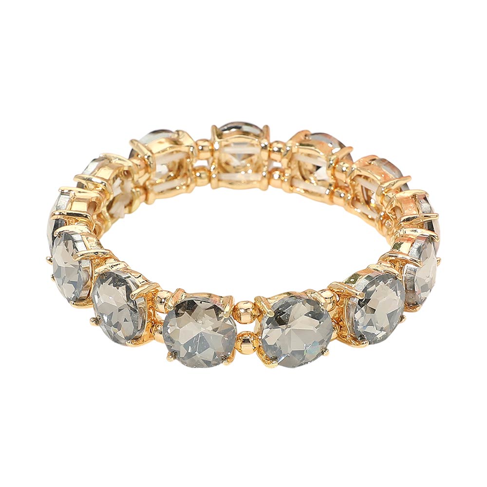 Round Stone Cluster Beaded Stretch Evening Bracelet