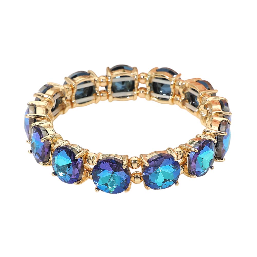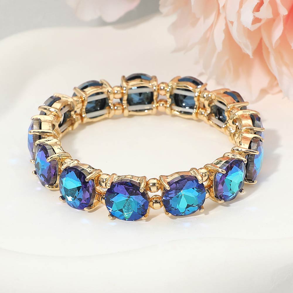 Round Stone Cluster Beaded Stretch Evening Bracelet