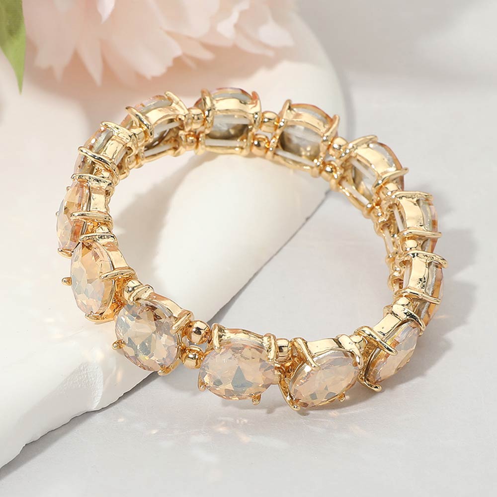 Round Stone Cluster Beaded Stretch Evening Bracelet