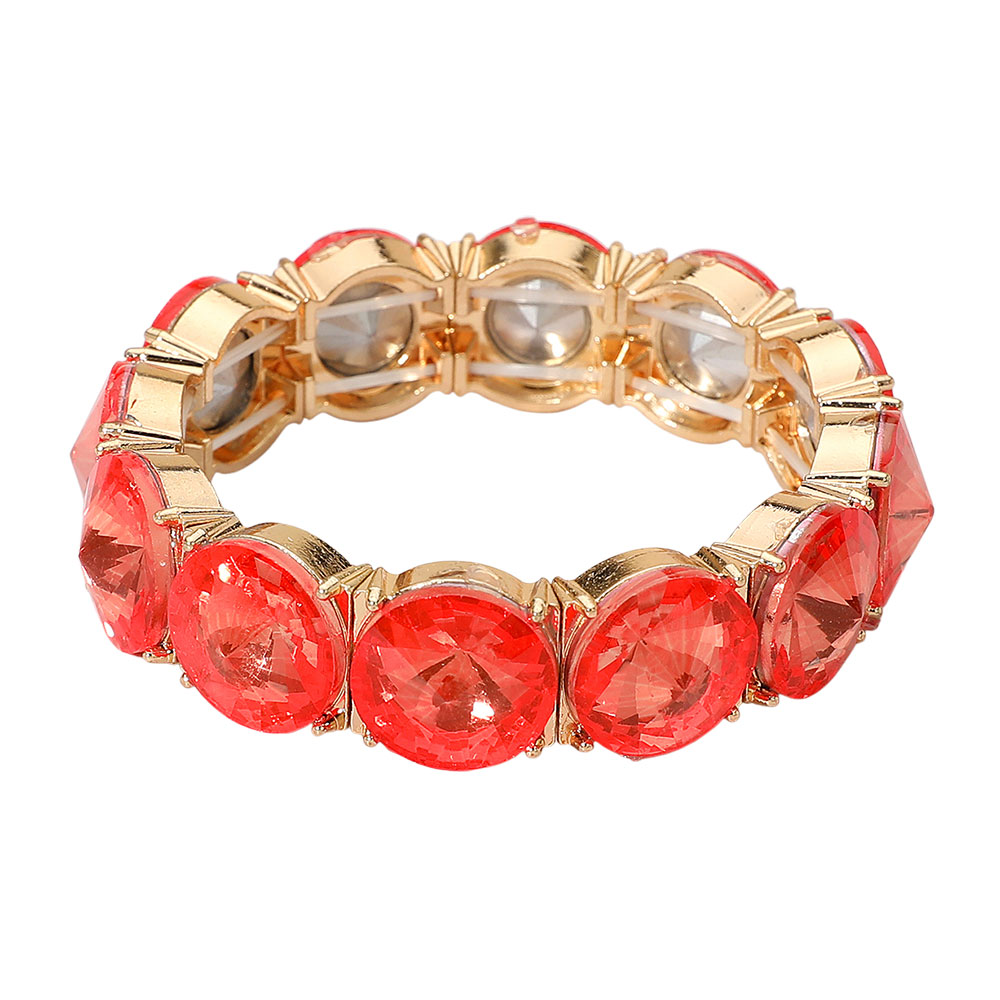• Elegant stretch bracelet featuring large round-cut faceted stones arranged in a continuous band. The flexible fit offers easy wear while the sparkling design adds a refined touch to everyday and special occasion outfits.