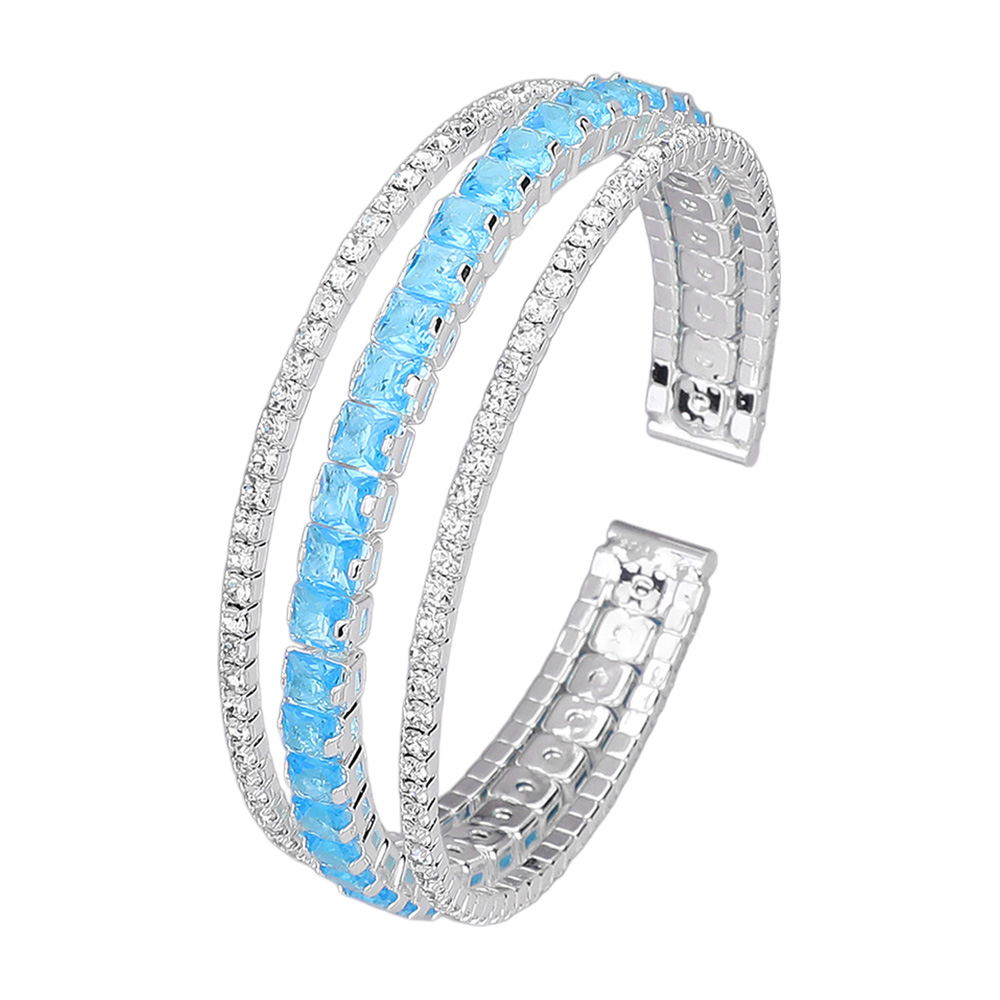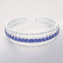 Square Cut CZ Stone Accented Split Evening Bracelet