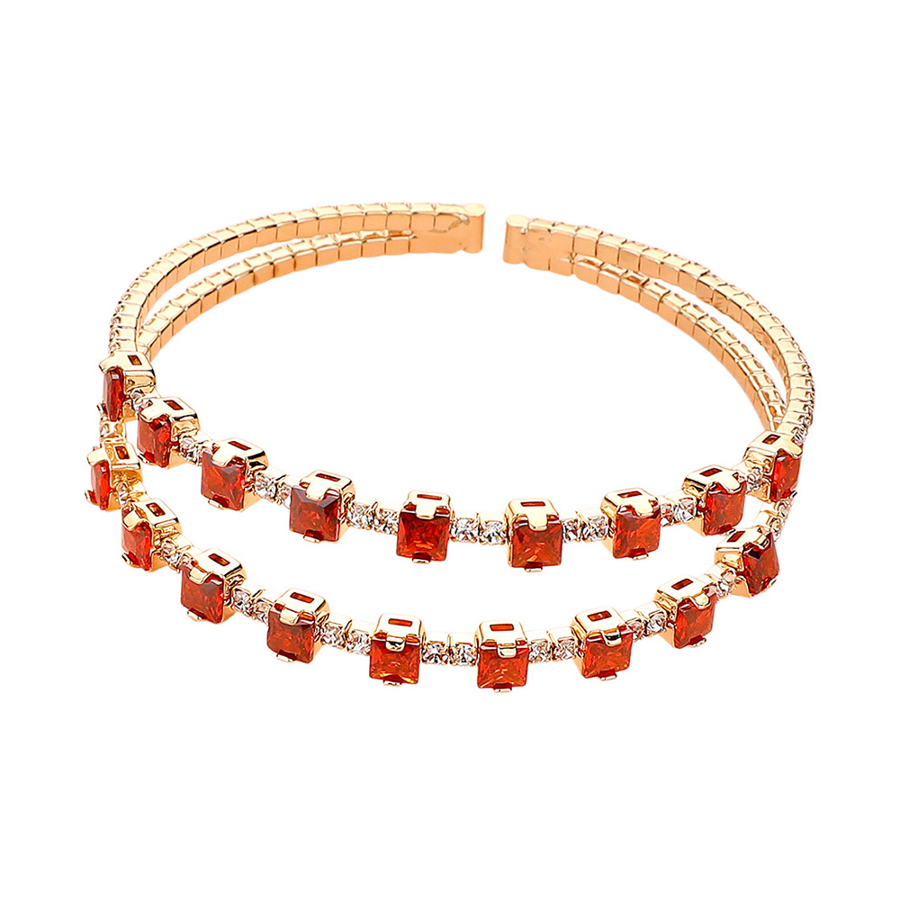 Square CZ Stone Cluster Accented Split Adjustable Evening Bracelet