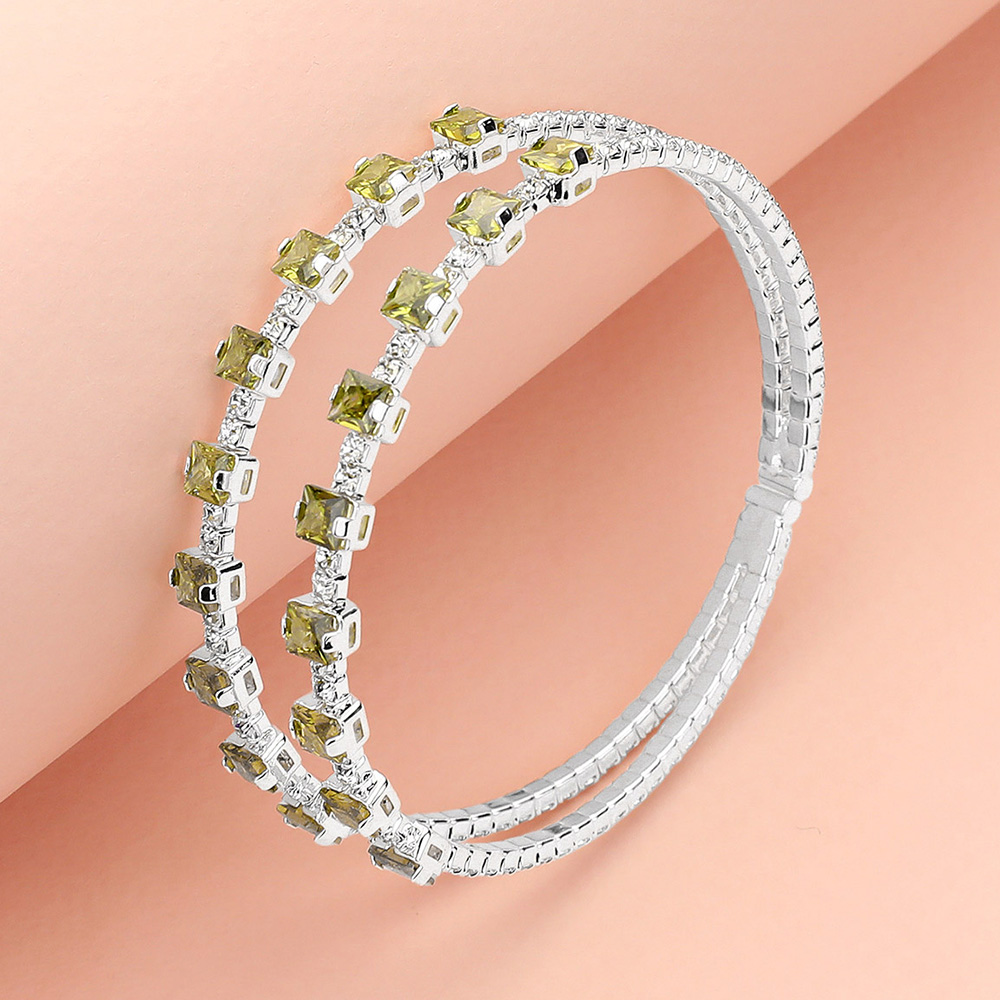 Square CZ Stone Cluster Accented Split Adjustable Evening Bracelet