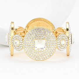 Square Stone Pointed Rhinestone Paved Disc Stretch Evening Bracelet
