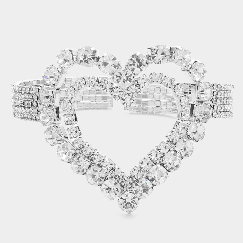 Stone Embellished Open Heart Cuff Evening Bracelet