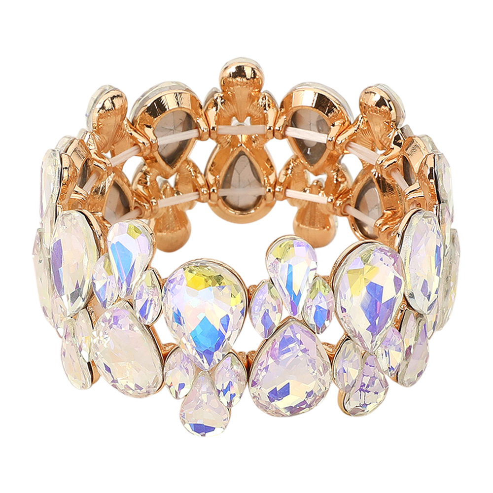 CZ Teardrop Stone Pointed Marquise Stone Embellished Dangle Evening Earrings