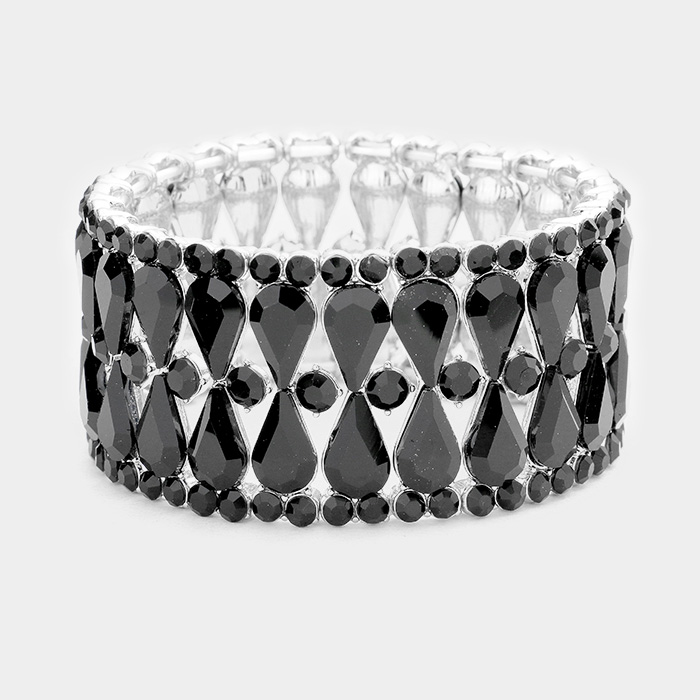 Teardrop Glass Stone Cluster Evening Stretch Bracelet