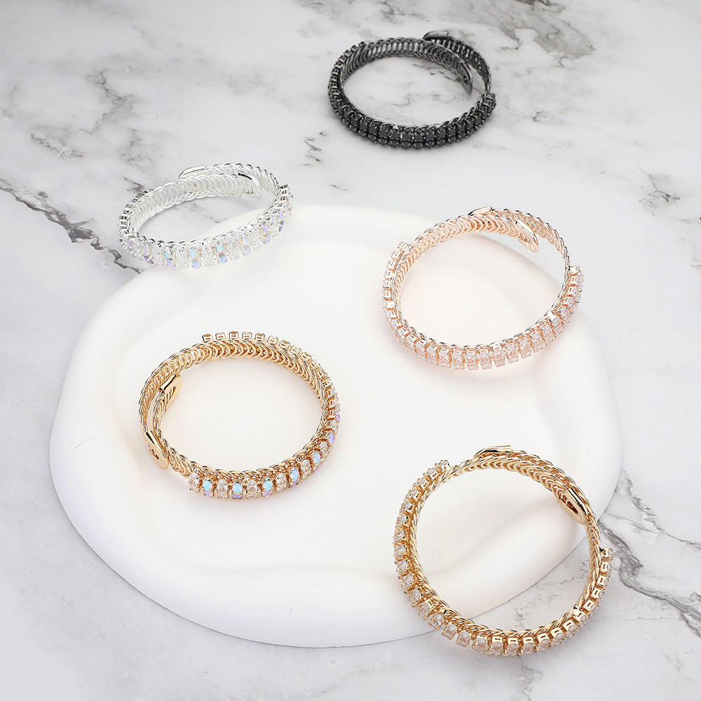 Stainless Steel CZ Stone Accent Hinged Bangle Bracelet