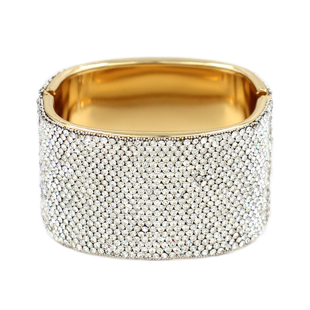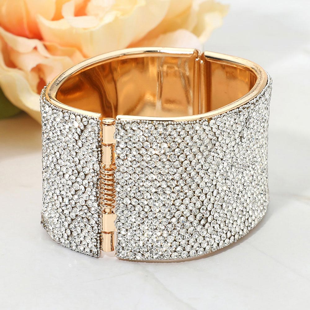 Wide Rhinestone Paved Hinged Evening Bangle Bracelet