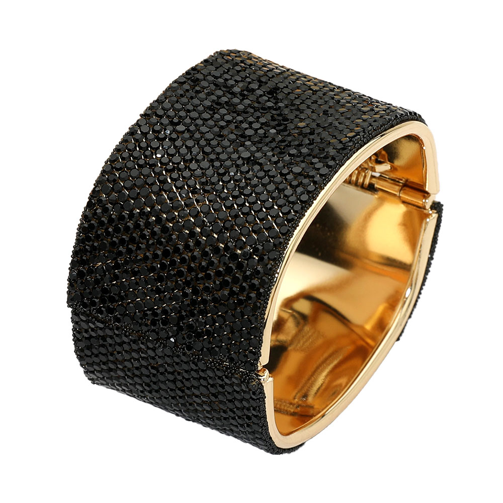 Wide Rhinestone Paved Hinged Evening Bangle Bracelet