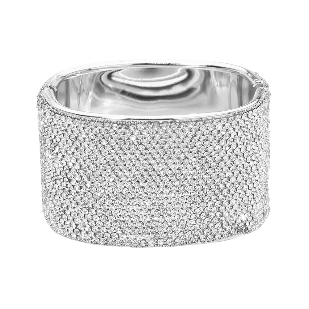 Wide Rhinestone Paved Hinged Evening Bangle Bracelet