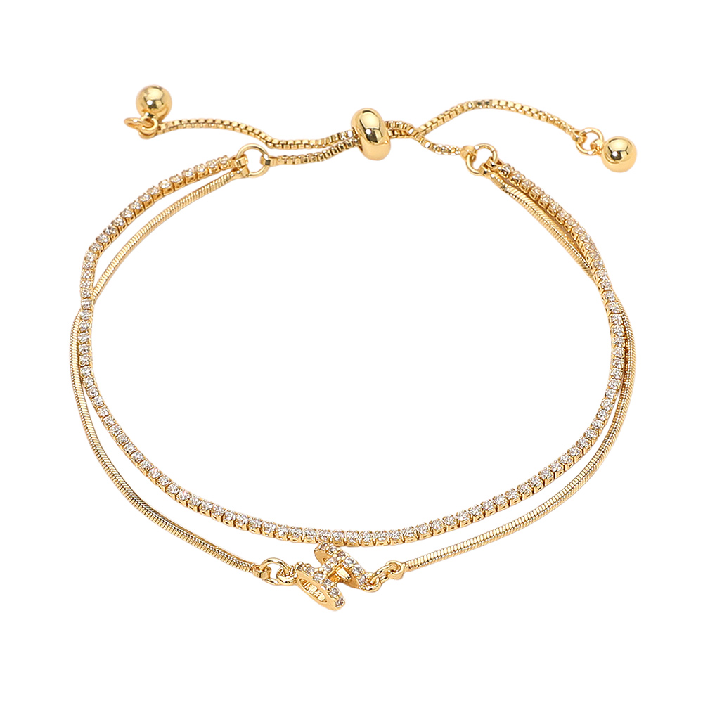 Details • Size : 0.3" H • Adjustable • Elevate your style with this adjustable layered crystal chain bracelet, designed for a refined, modern look. Its dual-chain detail and sparkling accents create a versatile piece that complements any outfit, from casual to formal. A chic and timeless addition to every jewelry collection. • Gold Dipped • Lead and Nickel Compliant
