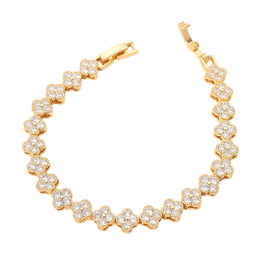 18K Gold Dipped Stone Paved Floral Link Bracelet 18K Gold Dipped Stone Paved Floral Link Bracelet 18K Gold Dipped Stone Paved Floral Link Bracelet 18K Gold Dipped Stone Paved Floral Link Bracelet