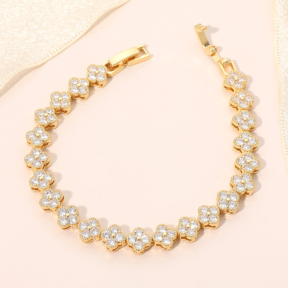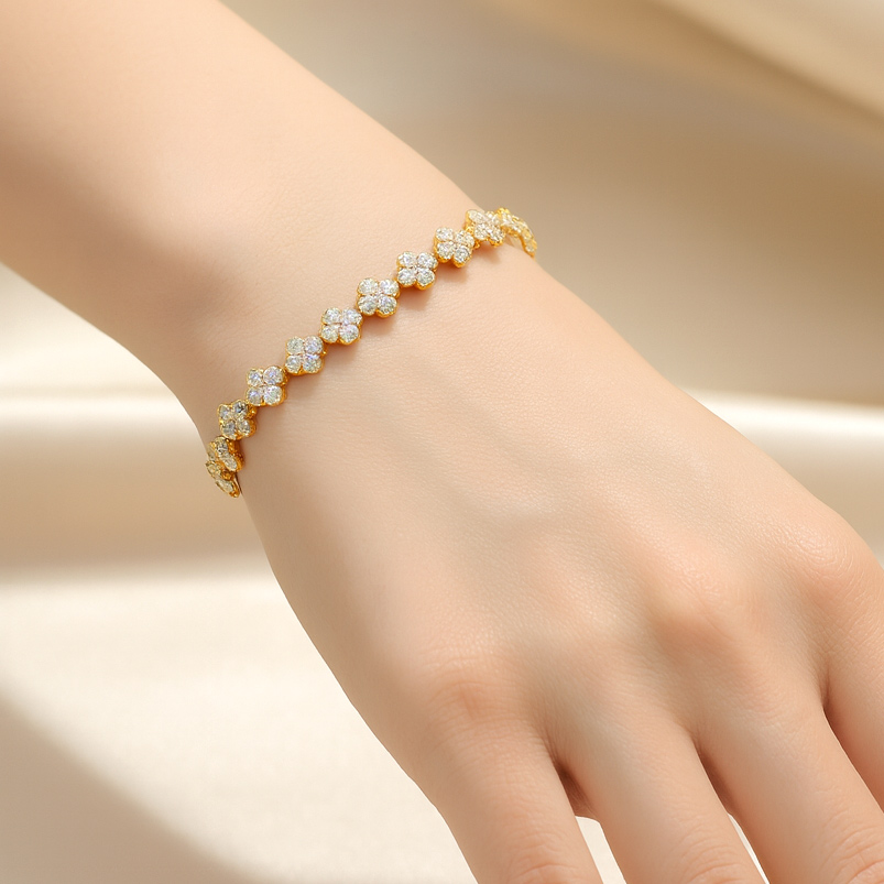 • Charming floral tennis bracelet adorned with dainty flower motifs and shimmering stones for a refined sparkle. Featuring a secure clasp and elegant finish, this feminine bracelet adds a romantic touch to both casual and formal looks, perfect for weddings, parties, and gifting.