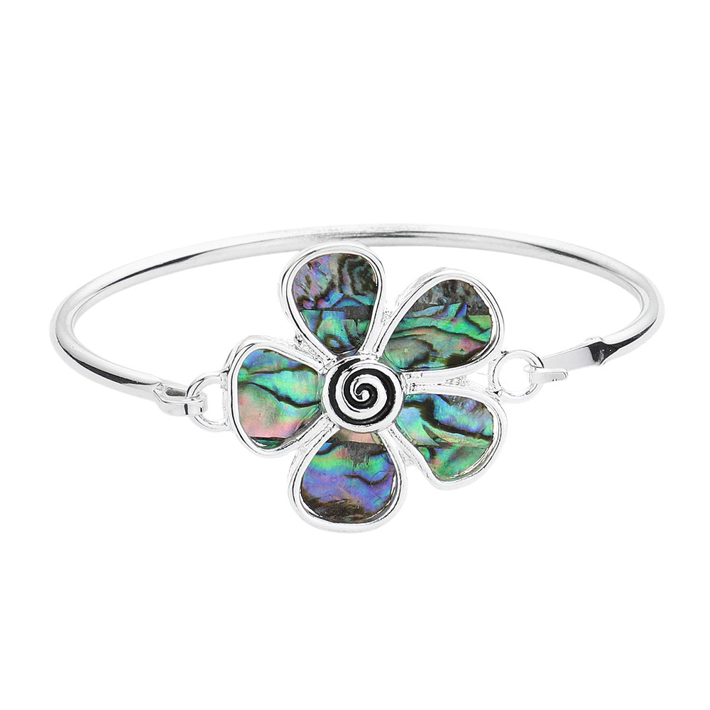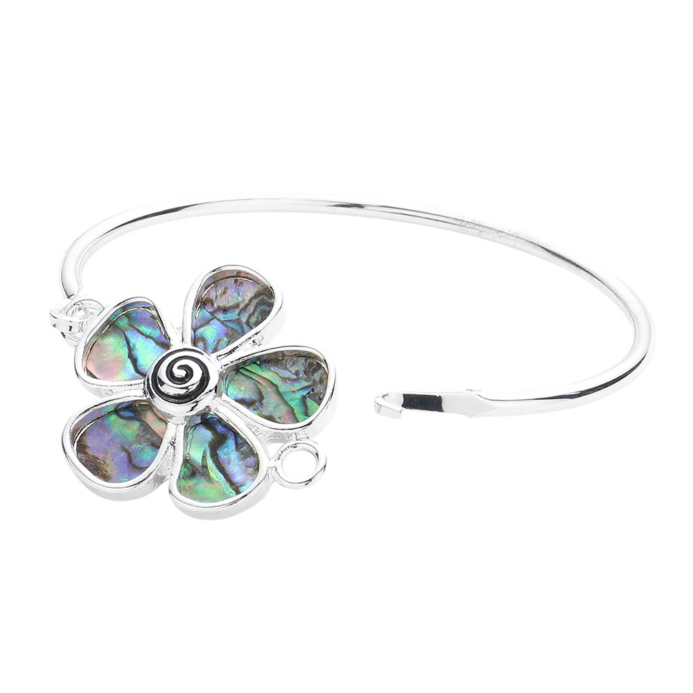 Abalone Flower Spiral Accent Bangle Bracelet Abalone Flower Spiral Accent Bangle Bracelet Abalone Flower Spiral Accent Bangle Bracelet